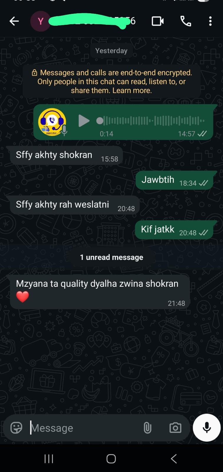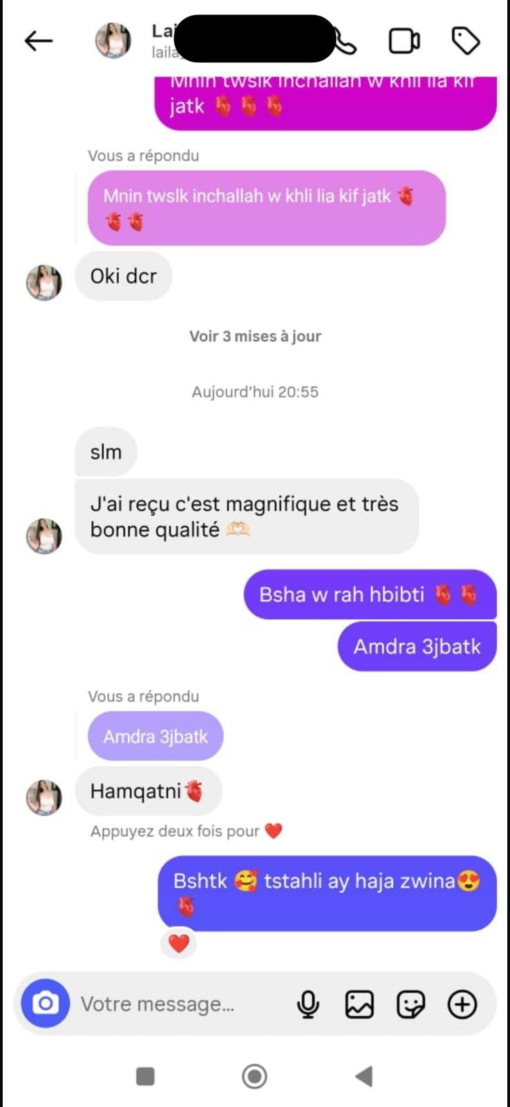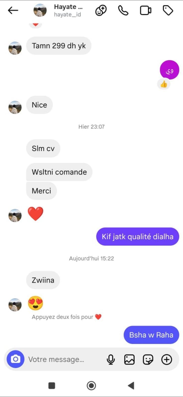 من اللحظة اللي كتدير فيها الطلب ديالك، فريقنا كيبقى معاك فالتواصل حتى توصلك السلعة. وحتى من بعد البيع، إلا كان أي مشكل أو استفسار، كنخدموك ونحلّوه معاك بلا تعقيدات.